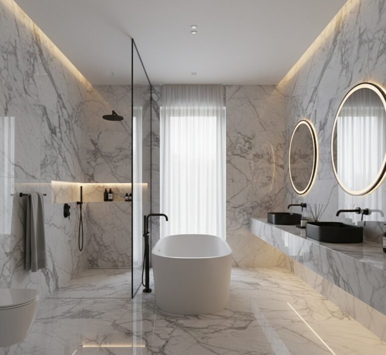 Mermerne površine: Idealne su za hodnike, salone i kupatila, gde dodaju notu sofisticiranosti i glamura.